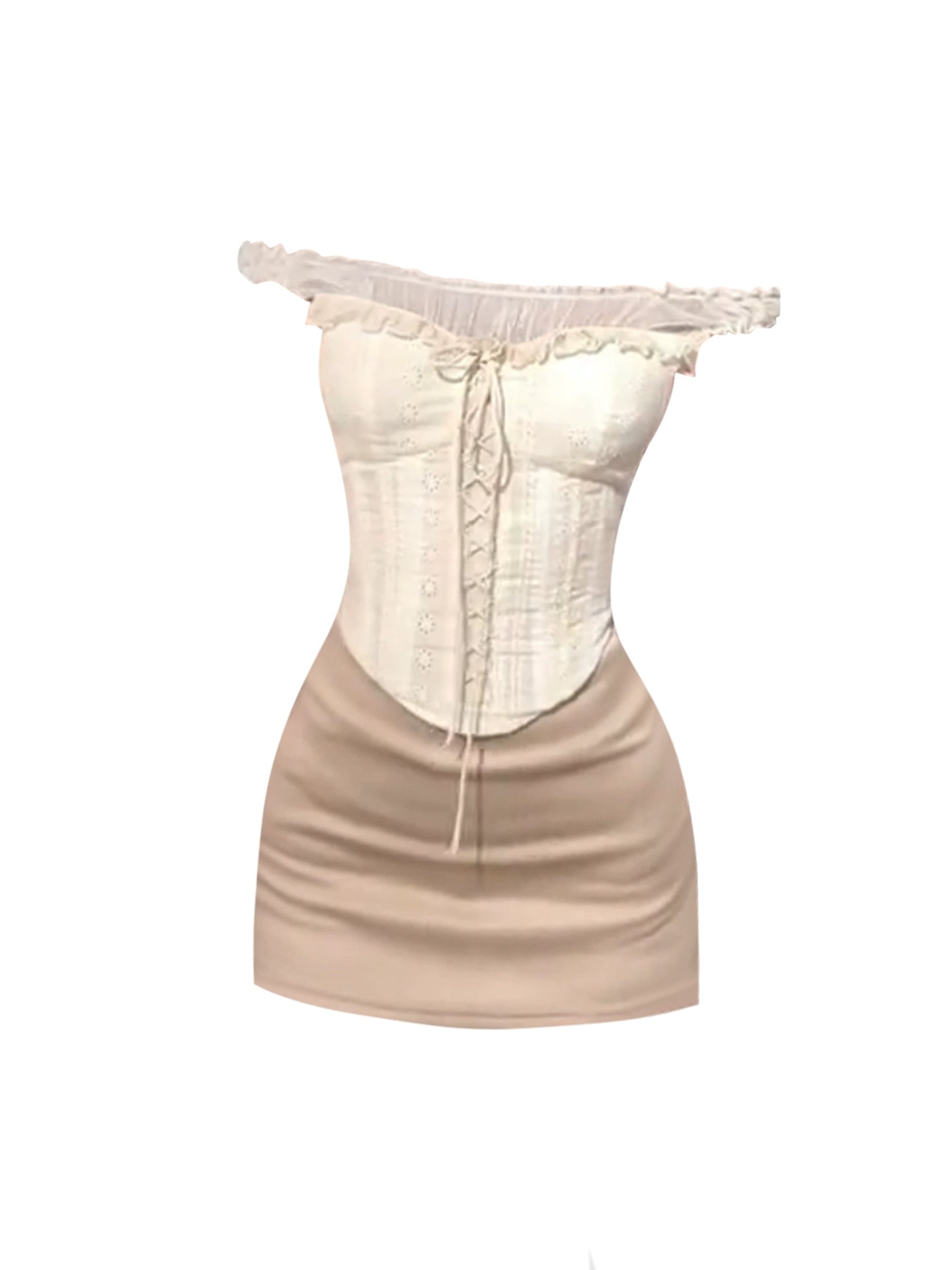 เซ็ตเกาะอกเปิดไหล่กับกระโปรงสั้นทรงดินสอสไตล์คุณหนู