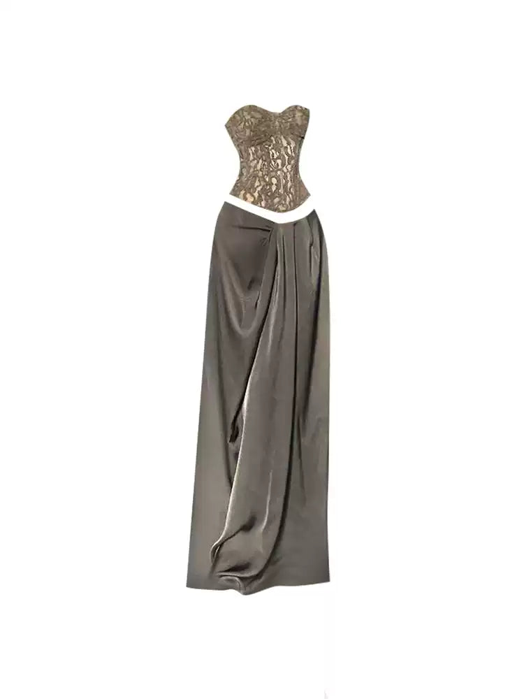 เสื้อเกาะอกโครงกระดูกผ้าลูกไม้สุดเซ็กซี่ คู่กับกระโปรงซาติน อวดหุ่นสวยอย่างมั่นใจ