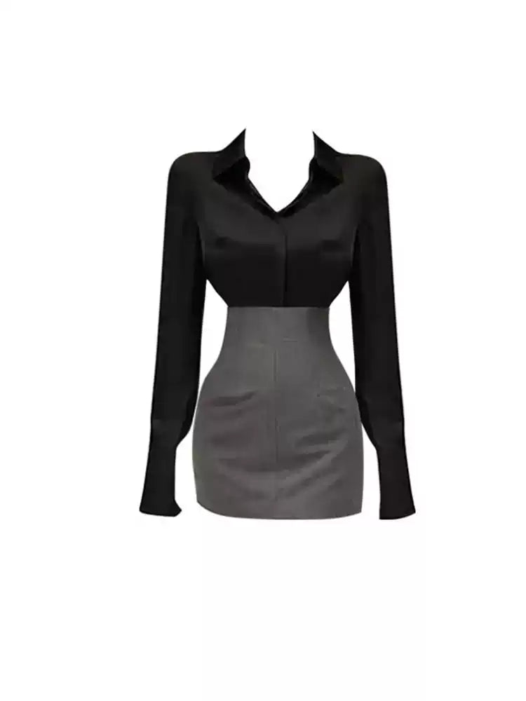 เสื้อเชิ้ตแขนยาวสีดำสุดหรู แมทช์กับกระโปรงโครงกระดูกเอวเข้ารูป สไตล์คุณหนูแซ่บมั่นใจ