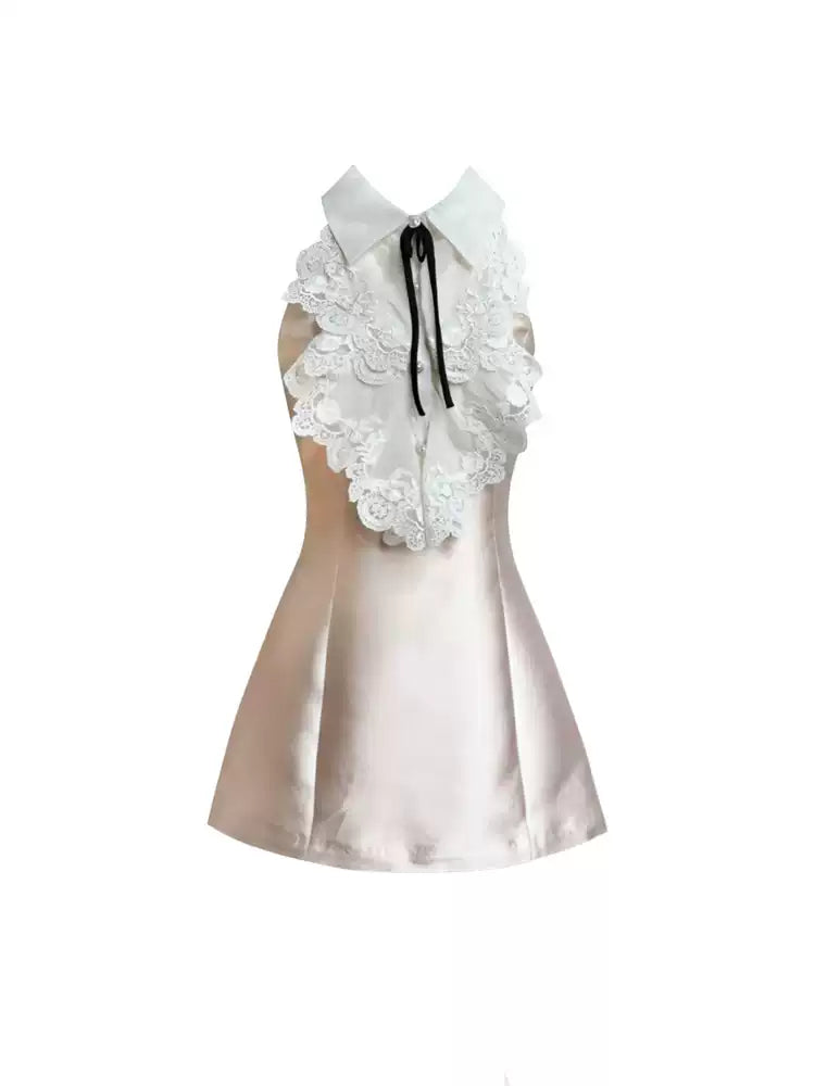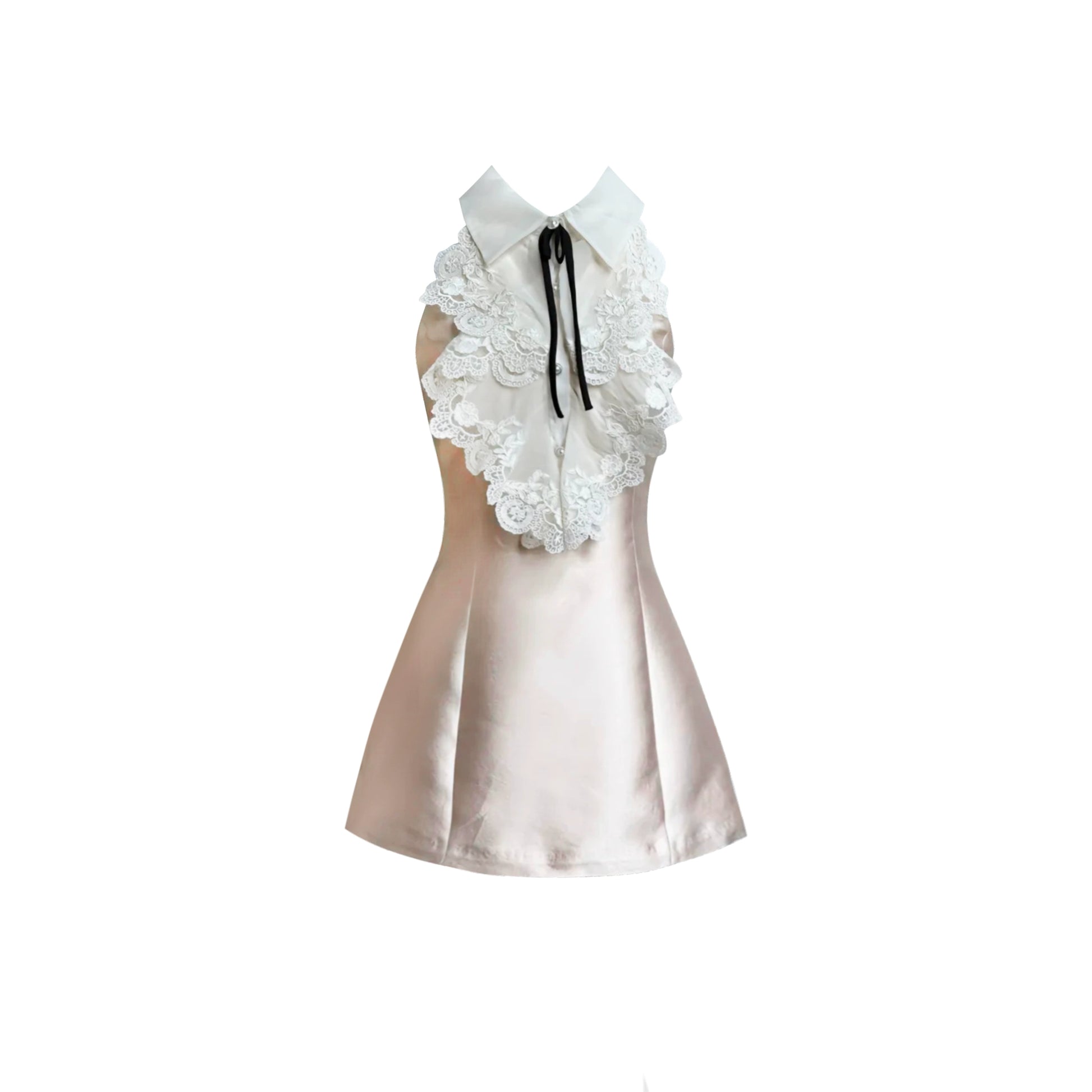 เดรสลูกไม้ต่อ ดีไซน์เอวเข้ารูป กระโปรงเอไลน์ฟูเล็กน้อย สวยหวานแบบไอดอลสาวดัง