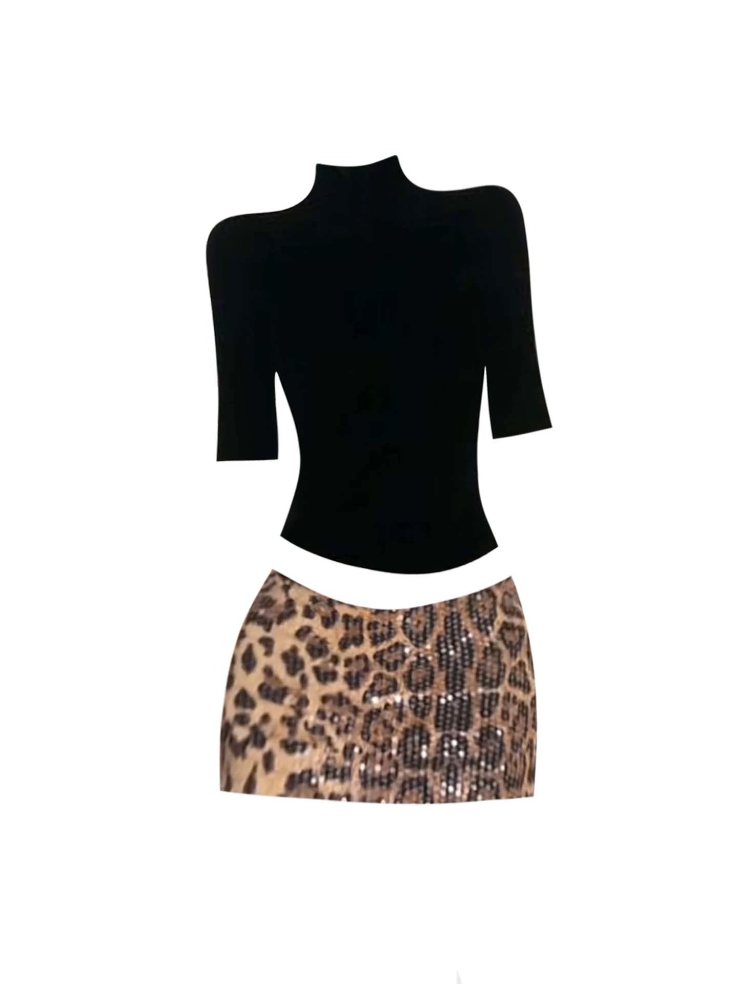 เสื้อคอจีนดีไซน์หรูพร้อมกระโปรงสั้นเข้ารูปลายเสือวิบวับ