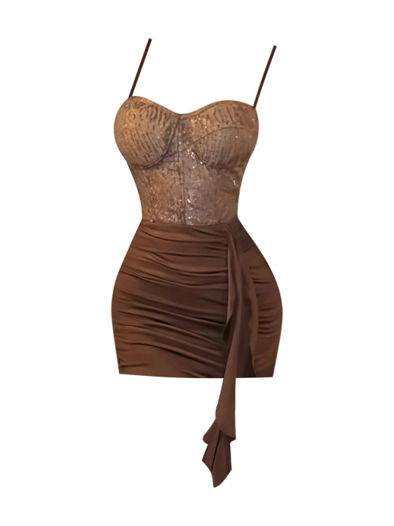 ชุดเซ็ตสายเดี่ยวผสมลูกไม้สุดชิค ดีไซน์เข้ารูป เน้นเอวและสัดส่วนสวยงาม เหมาะกับงานกลางคืนและงานปาร์ตี้