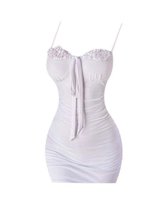 เดรสสายเดี่ยวลูกไม้แต่งระบาย เน้นสัดส่วนเข้ารูป เพิ่มความหวานแบบสาวน่ารัก เหมาะสำหรับงานเลี้ยงและปาร์ตี้